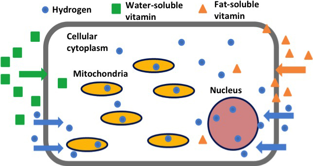 FIG. 1-3 Intracellular kinetics of molecular hydrogen and vitamins